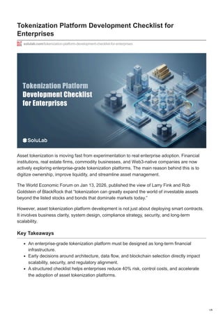 The World Economic Forum on Jan 13, 2026, published the view of Larry Fink and Rob Goldstein of BlackRock that “tokenization can greatly expand the world of investable assets beyond the listed stocks and bonds that dominate markets today.”