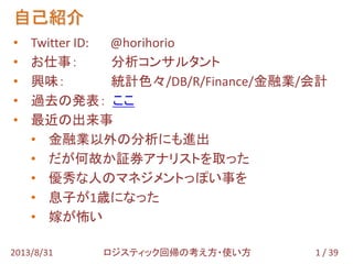 ロジスティック回帰の考え方・使い方 - TokyoR #33 1. 2. 自己紹介