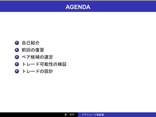 1. The document outlines an agenda for a web data mining meetup with topics including natural language processing, R programming for data analysis, and statistical modeling techniques like CAPM and cointegration analysis.