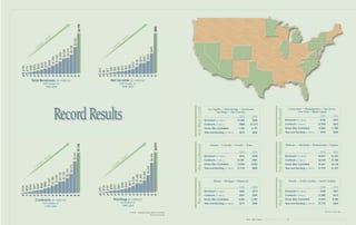 This document is Toll Brothers' annual report which summarizes their strong financial performance in fiscal year 2005, ending October 31, 2005. Some key points: - Toll Brothers had record results in 2005 with net income up 97% to $806.1 million, earnings per share up 90% to $4.78, total revenues up 50% to $5.79 billion, and contracts and backlog also up significantly. - They attribute their success to expanding their operations nationally, building in luxury markets, having a large supply of approved home sites, offering a variety of luxury home types, and the skill of their team of 5,600 associates. - Looking ahead, Toll Brothers expects continued growth through expanding