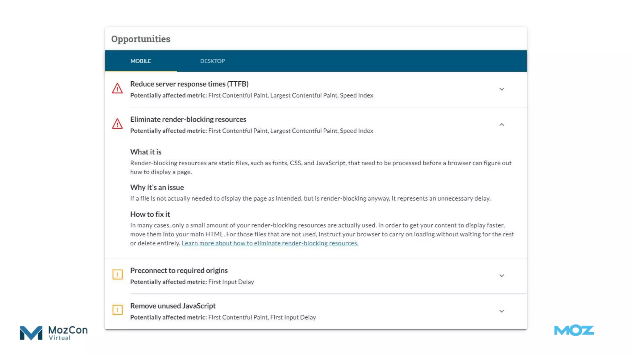The document discusses Core Web Vitals (CWV) and optimizations for them. It notes flaws in how CWV are defined and measured. It also summarizes that Google has delayed rolling out the CWV ranking update multiple times and provided clarifying details. The document suggests prioritizing high traffic pages for CWV work. While metrics can be optimized, improvements should not compromise page speed. Overall CWV may matter less for rankings than other factors like discoverability.