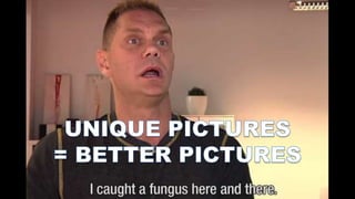 The document features a visual storytelling presentation by Tom Phillips, the editorial director of Buzzfeed UK, highlighting various photography works and their sources. It mentions notable photographers and images that resonate with themes of wildlife and creativity. The presentation concludes with a brief acknowledgment from Phillips.