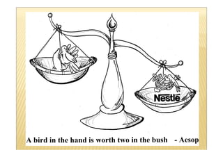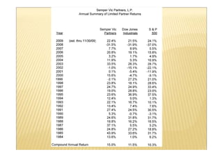 Thomas A. Russo gave a presentation on global value investing at a conference in Mexico City in December 2009. He discussed his background and philosophy of value investing, focusing on finding undervalued companies trading at discounts to their intrinsic value. He emphasized the importance of a long-term investment horizon, tax efficiency, and not being overly focused on short-term profits. Russo provided examples of large global companies he has invested in for decades, such as Nestlé and Pernod Ricard, and discussed some of their strengths and challenges over time.