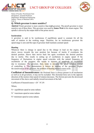 - Hunting, which is speed oscillations that can intensify due to resonance between the governor and engine.