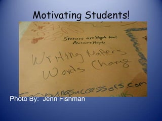 This document outlines the four steps for writing a research paper: brainstorming, pre-writing, writing a rough draft and editing it, and producing a final copy. It provides photos and captions to illustrate each step of the writing process, and recommends taking time to brainstorm ideas, outline important facts in the pre-writing stage, draft and edit the paper, and then produce a final polished copy. It also lists the Flickr resources for the photos used.