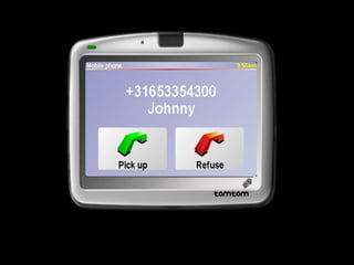 2) The document discusses TomTom's connected navigation solutions which combine navigation with two-way communication and fleet management tools to track vehicles and communicate with drivers.