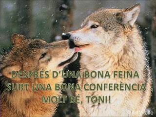 Toni 1. Dimecres dia 26 de Gener a les 13,00h Conferència a càrrec de: Toni Pons Marquès expert en: ELS LLOPS Quin tipus d’animal és? Com s’alimenta? Com es reprodueix? On viu? 2. 3. 4. 5. 6. 7. 8. 9. 10. 11. 12. 13. 14. 15. 16. 17. 18. 19. 20. 21. 22.