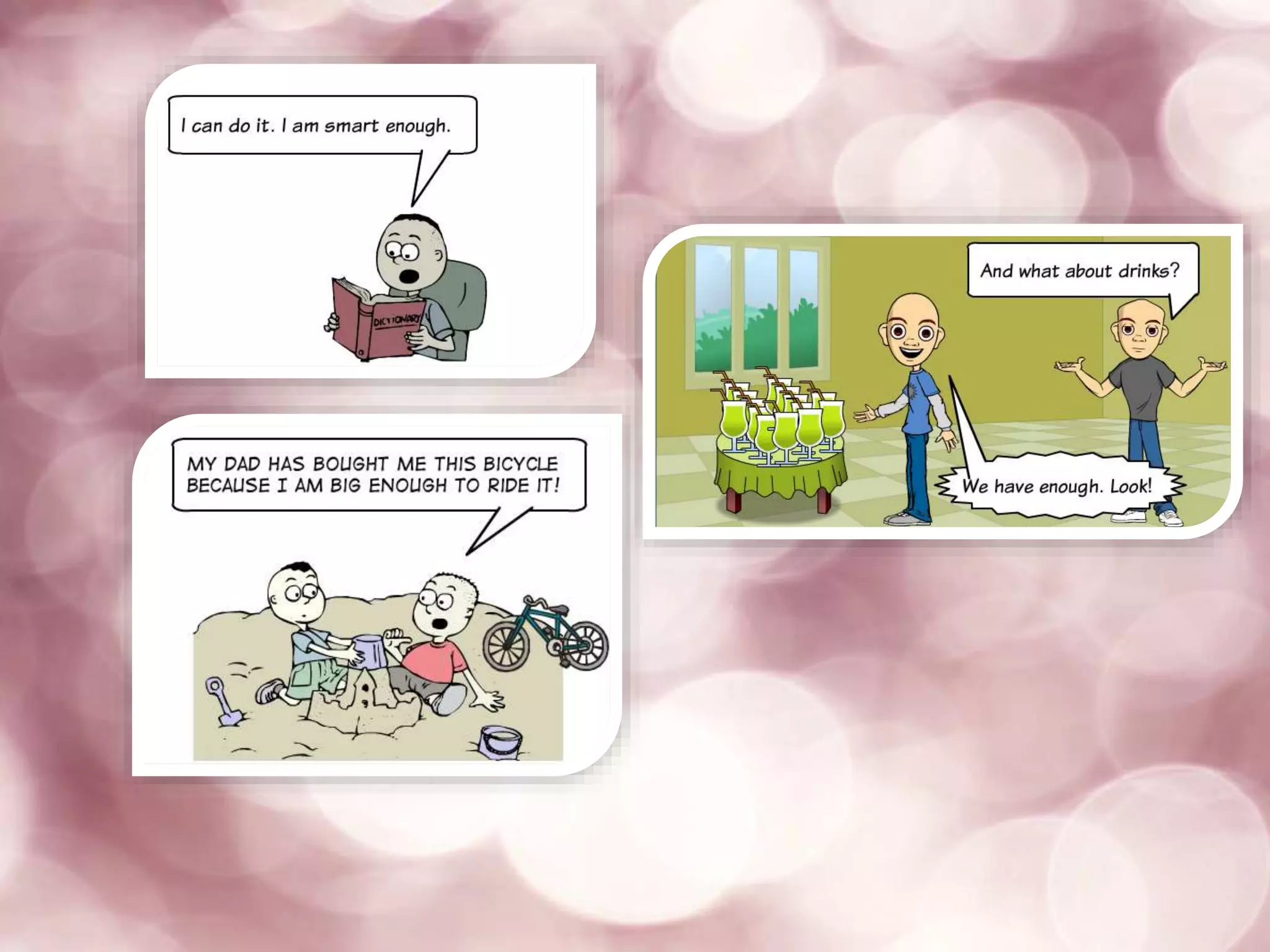 The document discusses the usage of terms like 'too', 'enough', and 'very' in the English language. It explains how 'too' indicates excess, 'enough' signifies adequacy, and provides examples of their construction in sentences. Additionally, the document suggests that 'enough' can also function as a noun.