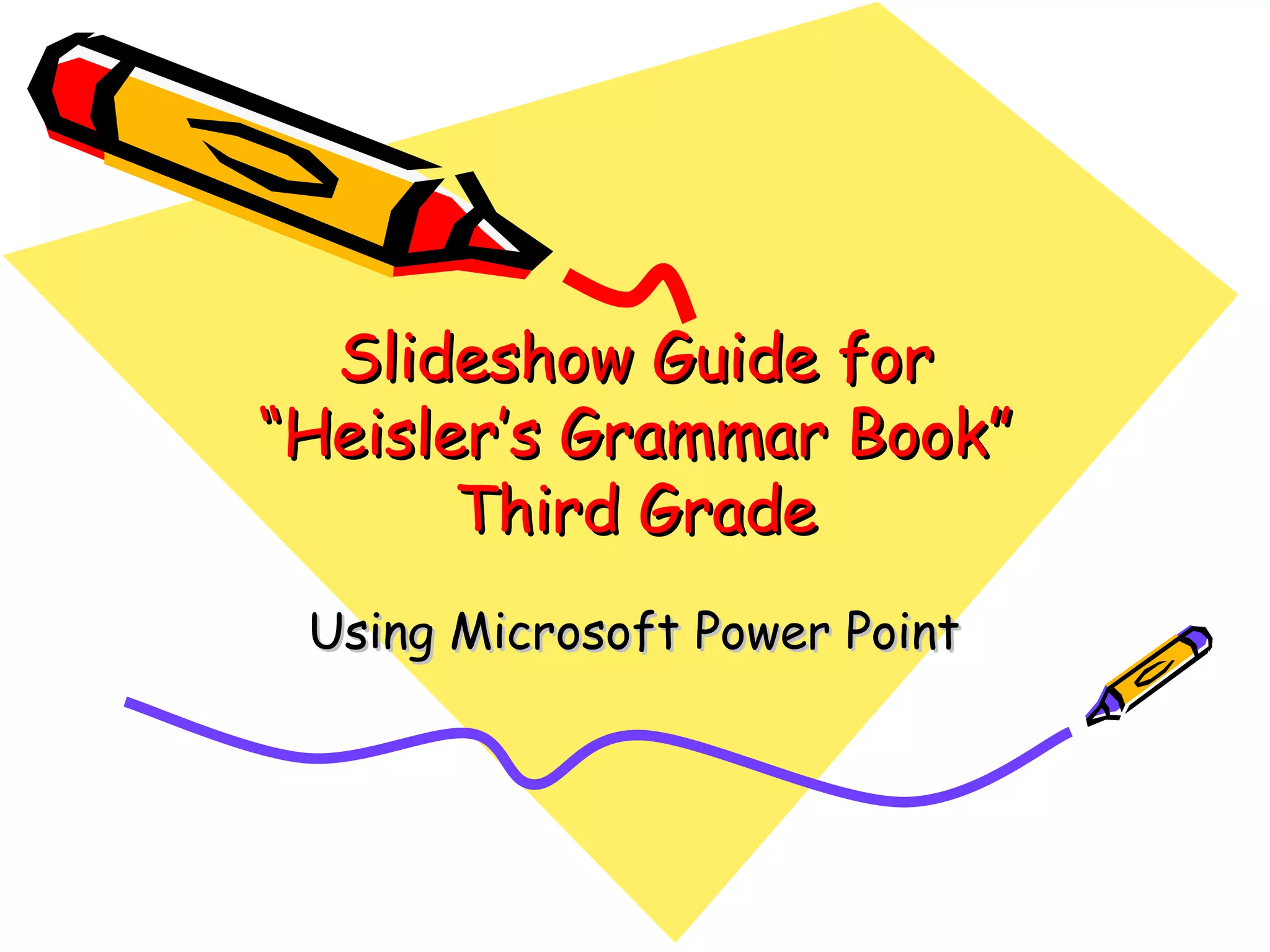 This document provides instructions for creating a slideshow in Microsoft PowerPoint about a third grade grammar book. It outlines how to download photos, choose slide layouts and designs, add and arrange text, photos, and clip art, insert slides, and view the completed slideshow. Examples of slides are included to demonstrate how a student might showcase vocabulary words like "pair" and "pears" through a combination of photos and clip art.