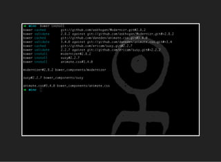 The document discusses modern front-end development tools and methodologies, highlighting the evolution from traditional systems to more efficient workflows with tools like Gulp and Grunt. It emphasizes the importance of proper coding standards, automation, and leveraging CSS preprocessors to streamline code organization and reduce errors. The author advises on wisely selecting tools and managing dependencies to enhance productivity in a Drupal development environment.