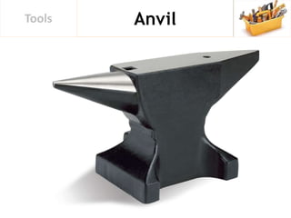 The document lists various types of tools used in woodworking and construction, including hand tools and power tools. It is based on personal experiences of assisting with school assignments and aims to provide useful information for students and parents. The author expresses gratitude and notes that all images used are credited to their original authors.