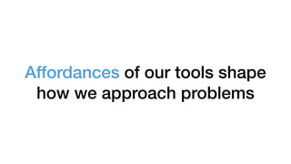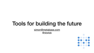 The document discusses tools for building the future and their impact. It notes that the speed of iteration matters and that countless hours are lost building administrative interfaces and integrations. It advocates building using a library of standardized reusable components and learning from blockchains about openness and lowering friction. Trends to watch include no-code, augmenting human intelligence with AI, and API-first and systems-level thinking.