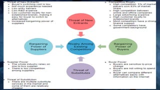 The document discusses various tools for strategic analysis including environmental scanning, SWOT analysis, Porter's five forces model, and VRIO analysis. Environmental scanning involves tracking trends in an organization's internal and external environment. SWOT analysis identifies strengths, weaknesses, opportunities, and threats. Porter's five forces model examines the competitive forces that shape an industry. VRIO analysis evaluates the value, rarity, imitability, and organization of a firm's resources and capabilities.