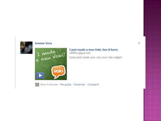Voki is a web 2.0 tool that allows users to create personalized avatars that can speak. Users can customize the avatar's appearance and background. The avatar's voice can be recorded by the user or generated through text-to-speech. Voki avatars can be used to improve listening and speaking skills through activities like introductions, role plays, and practicing vocabulary pronunciation. Students enjoy creating their own avatars and listening to the recorded voices. The process involves signing up on the Voki website and creating an avatar.