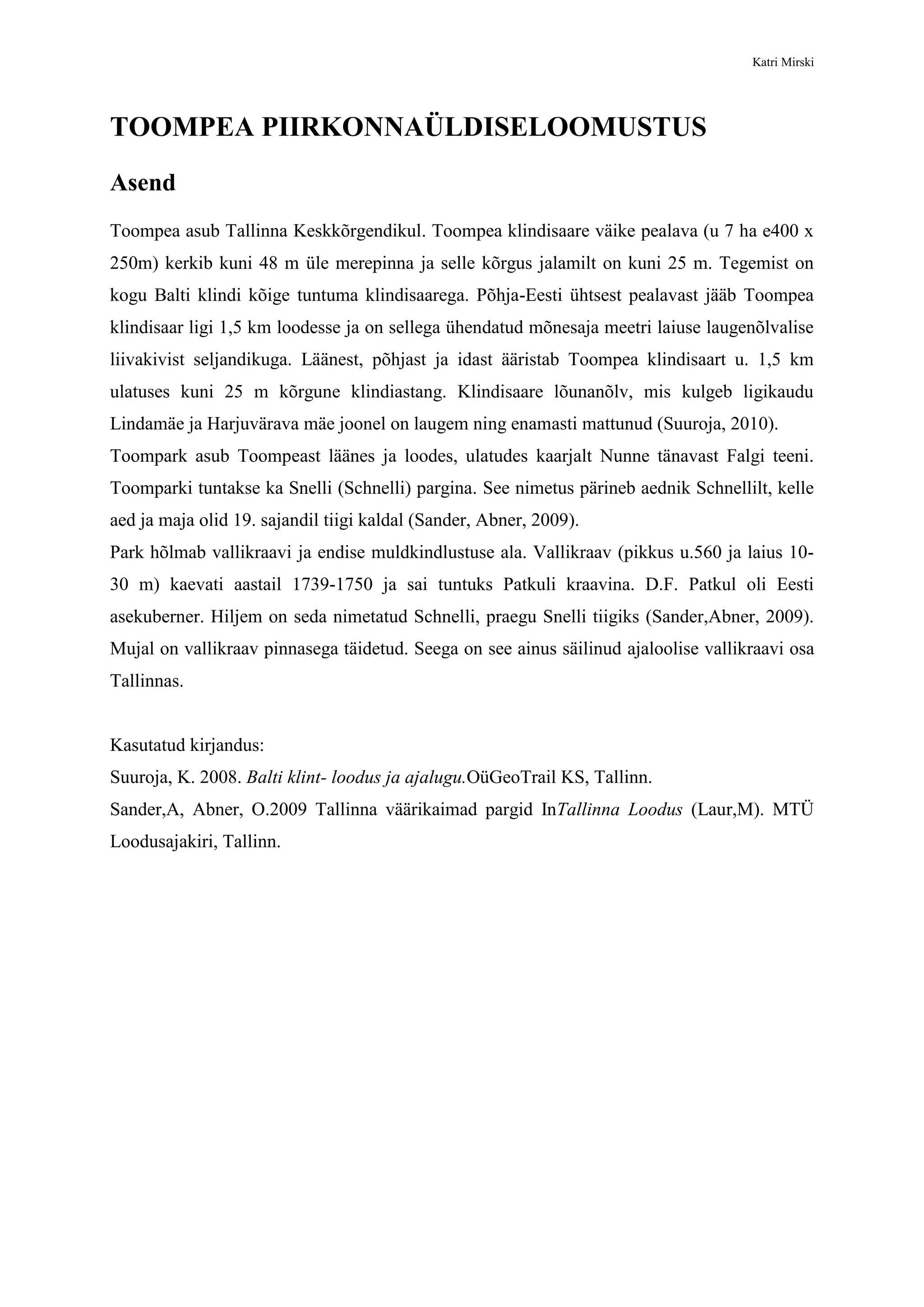 Sander,A, Abner, O.2009 Tallinna väärikaimad pargid InTallinna Loodus (Laur,M). MTÜ