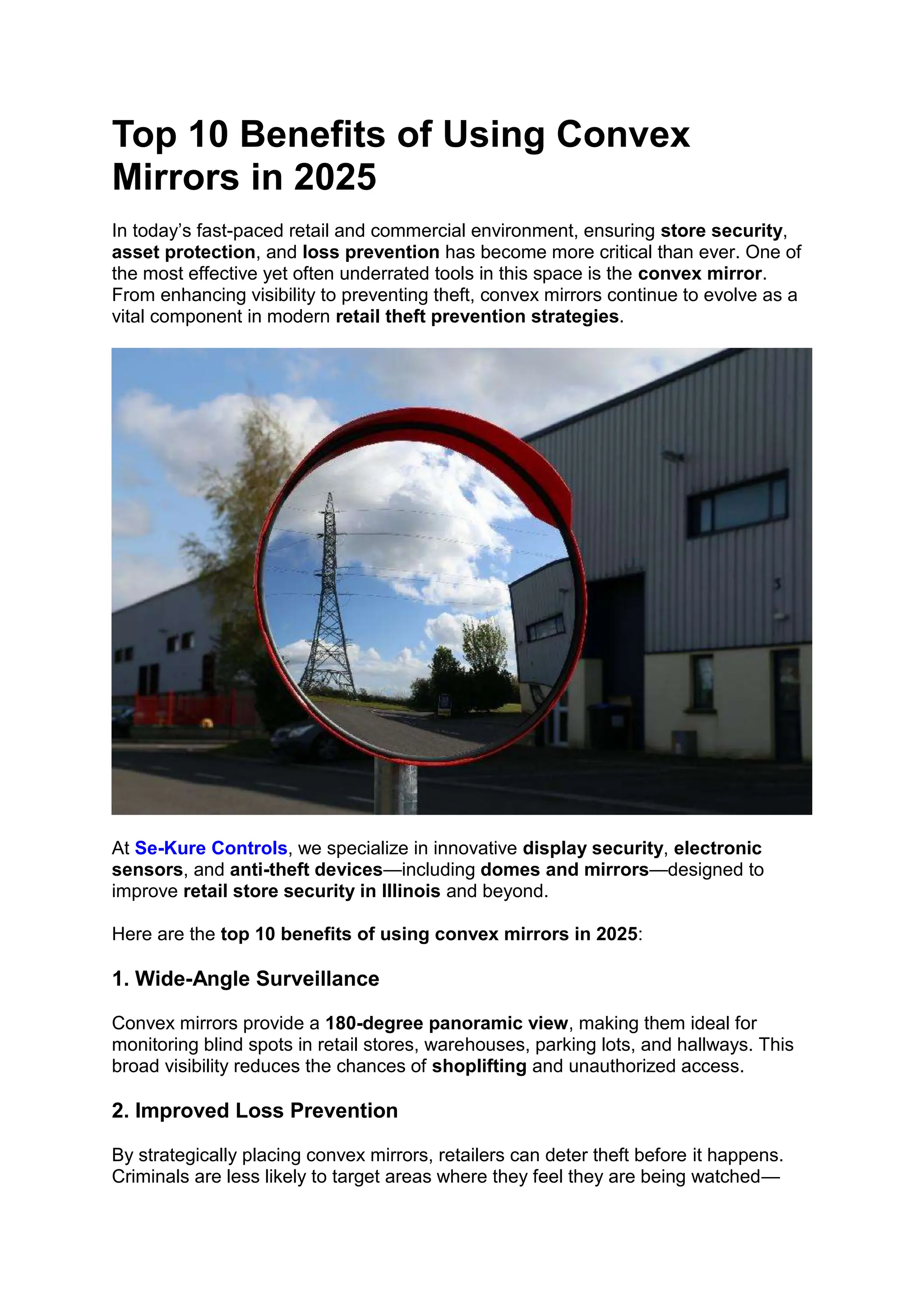 In today’s fast-paced retail and commercial environment, ensuring store security, asset protection, and loss prevention has become more critical than ever. One of the most effective yet often underrated tools in this space is the convex mirror. From enhancing visibility to preventing theft, convex mirrors continue to evolve as a vital component in modern retail theft prevention strategies.