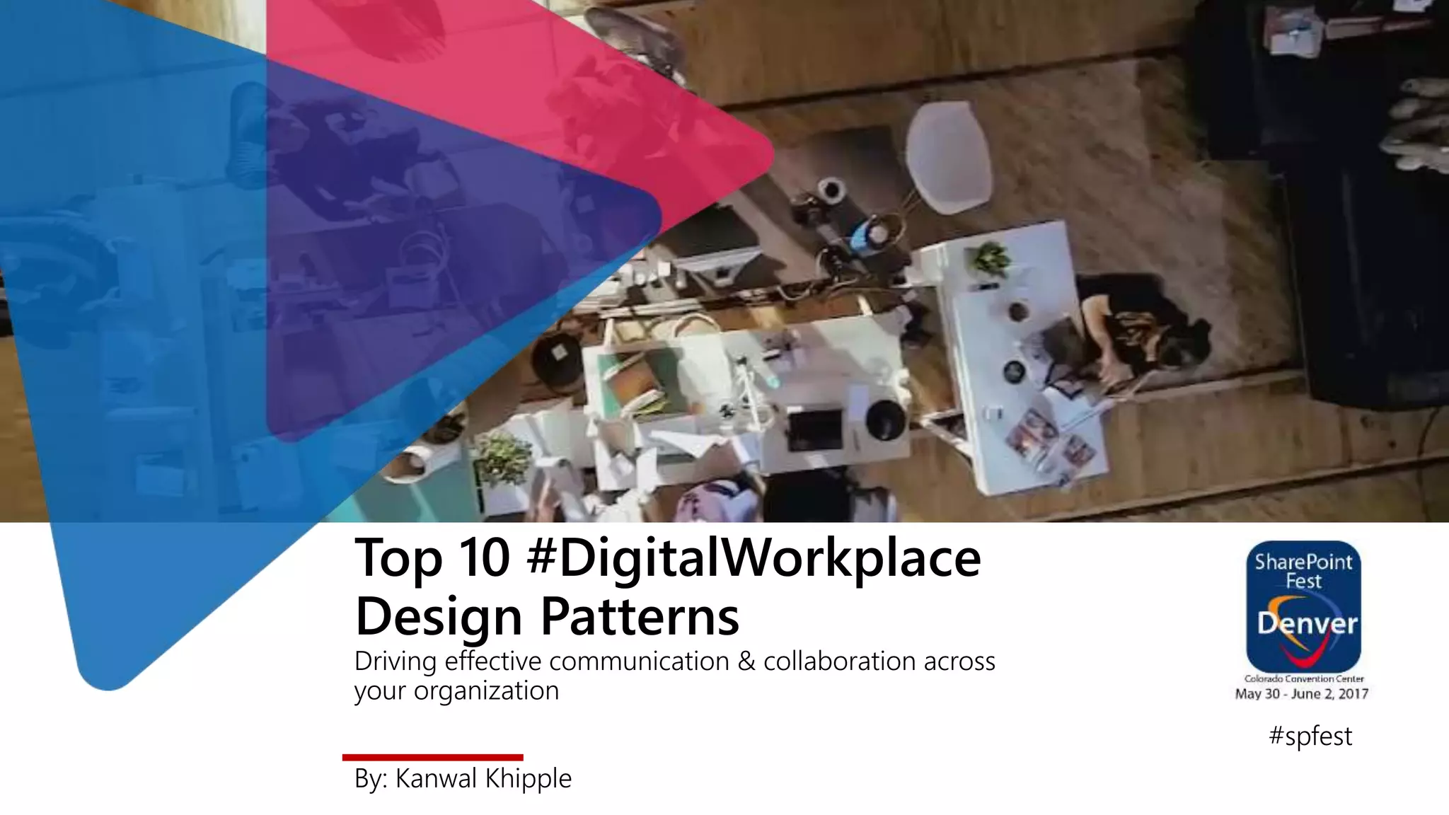 The document discusses the top 10 digital workplace design patterns that enhance communication and collaboration within organizations, emphasizing the importance of a digital workplace as a dynamic environment shaped by technology. It outlines strategies for adoption, integration, and user experience while highlighting tools like Microsoft Office 365, SharePoint, and various collaboration platforms. The content encourages organizations to continuously improve their digital workplace through user-centric designs and tailored strategies to drive effective employee engagement and productivity.
