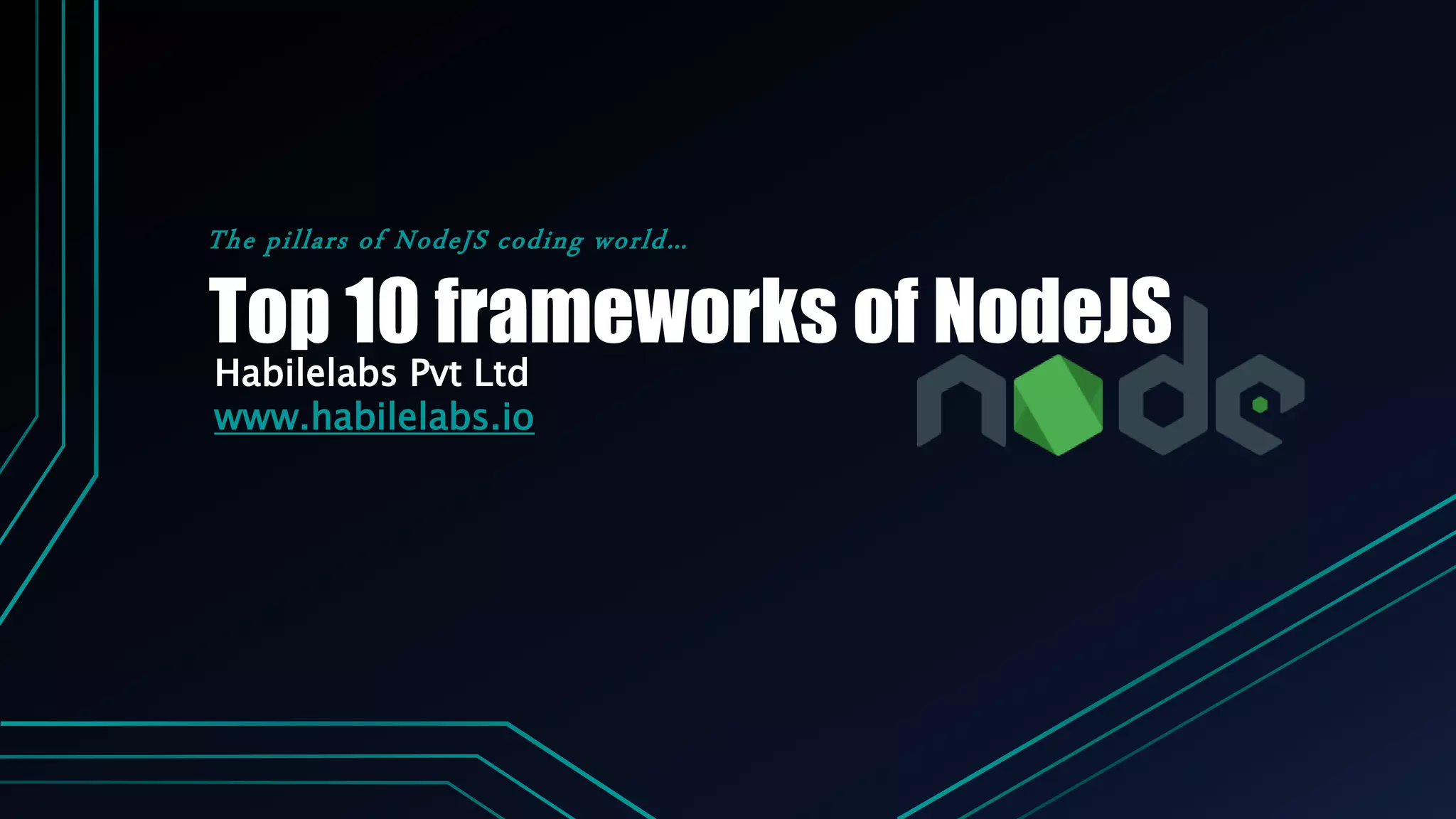 The document provides an overview of Node.js, including its purpose and features, alongside a list of the top 10 Node.js frameworks such as Express.js, Loopback, and Koa.js, detailing their functionalities and use cases. It also outlines guidelines for selecting an appropriate framework based on project requirements and community support. The document serves both as an educational resource and a practical guide for developers looking to utilize Node.js frameworks.
