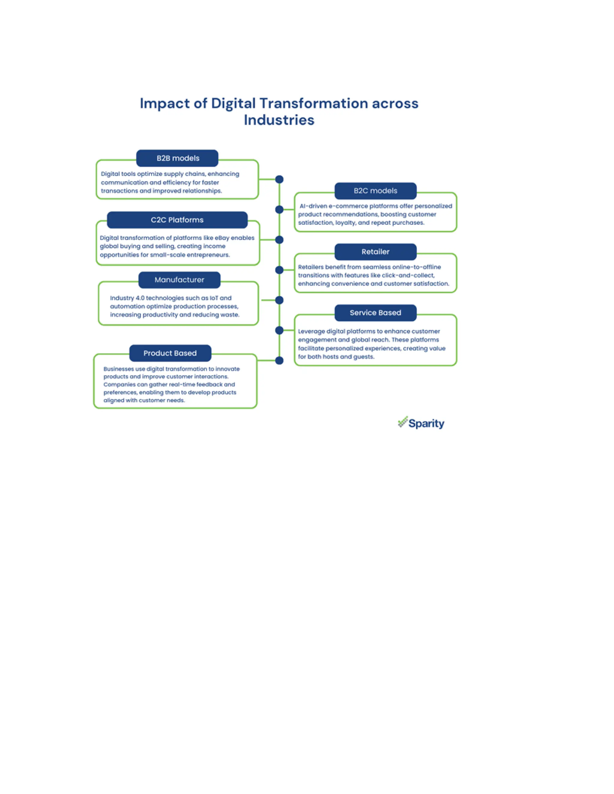 The document discusses the significant impacts of digital transformation on business models and industries in 2024, emphasizing the integration of technologies like AI and cloud computing. Key effects include enhanced customer experiences, operational efficiency, diversification of revenue streams, and organizational agility, which compel businesses to adapt and innovate. Ultimately, digital transformation is essential for maintaining competitiveness and relevance across various sectors.