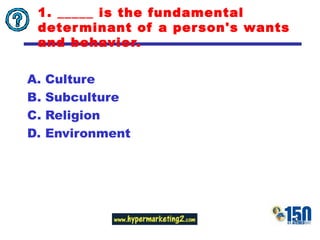 1. The main determinant of a person's wants and behavior.
