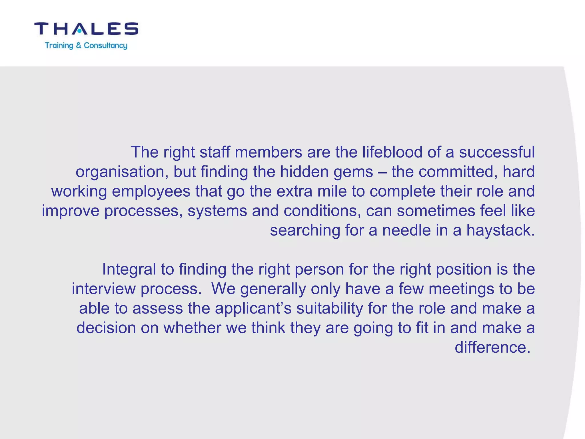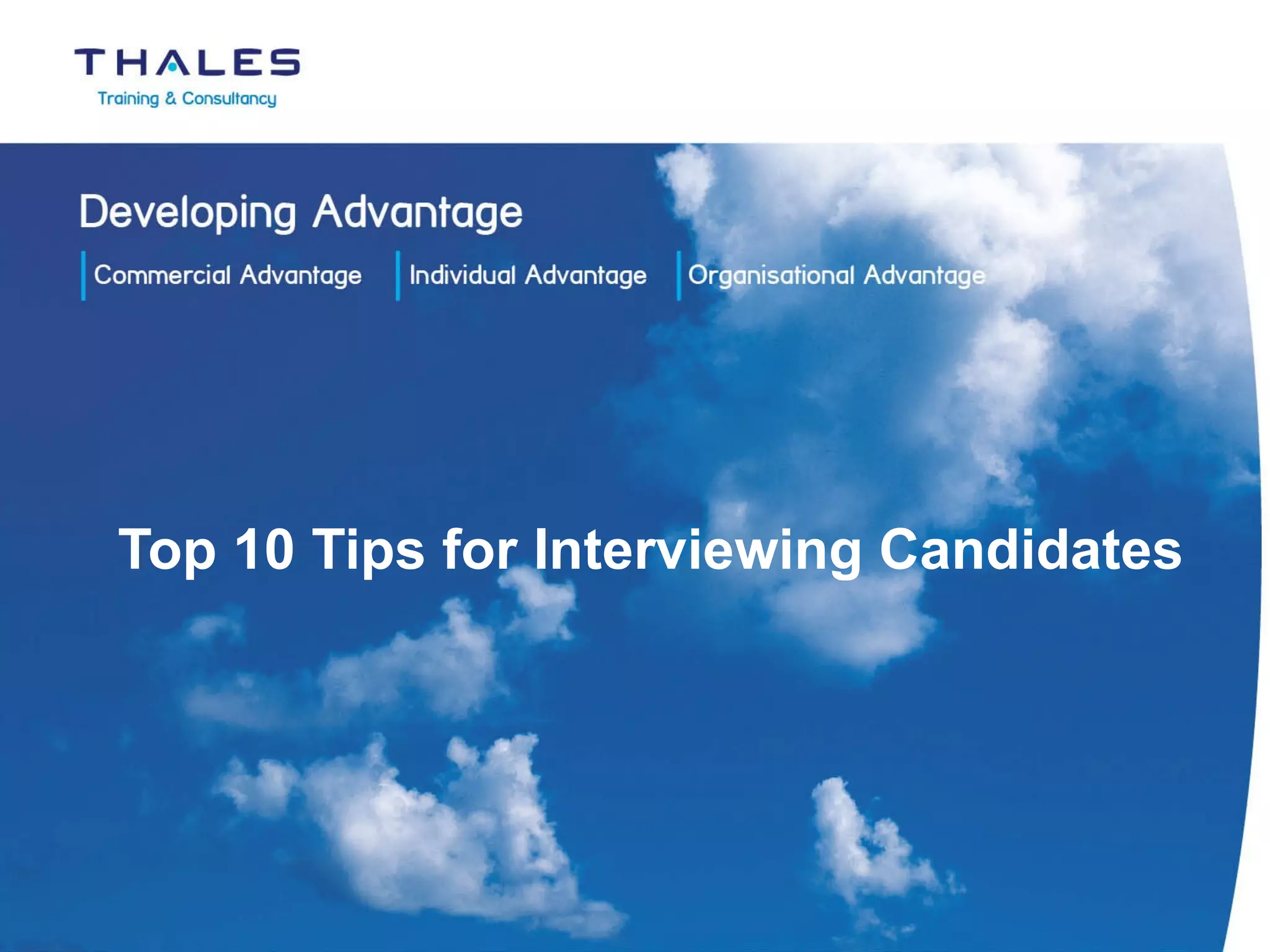 The document outlines the top 10 tips for effectively interviewing candidates to find the right employees for an organization. Key recommendations include defining job specifications, using structured interviews, involving current staff, maintaining legal compliance, and following up with candidates. By implementing these strategies, hiring managers can enhance their decision-making process and create a positive recruitment experience.