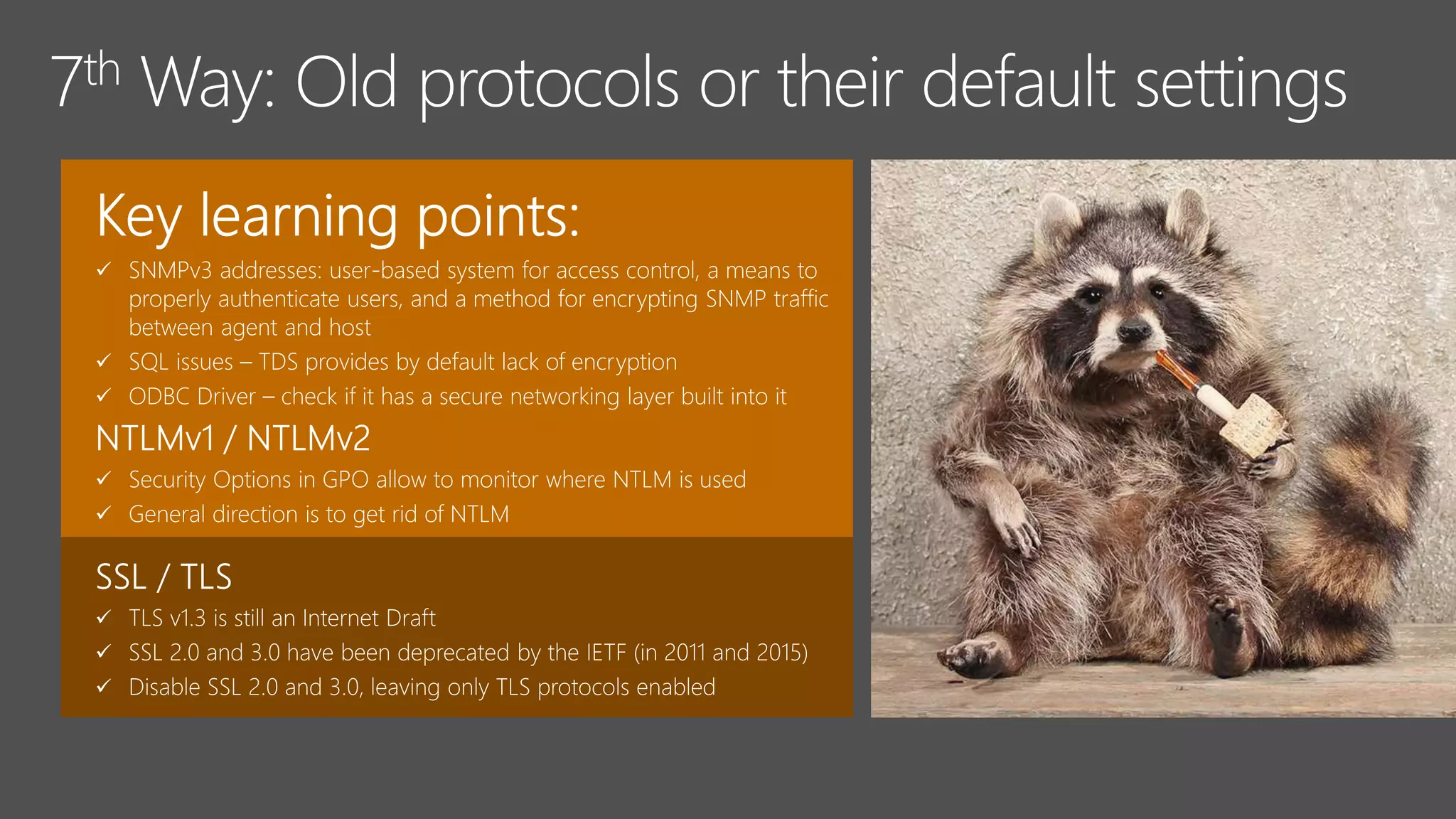 3) Privileged accounts and service accounts pose risks as their passwords are stored in the registry and accessible offline. User privileges can be higher than expected, allowing access to sensitive system hives.