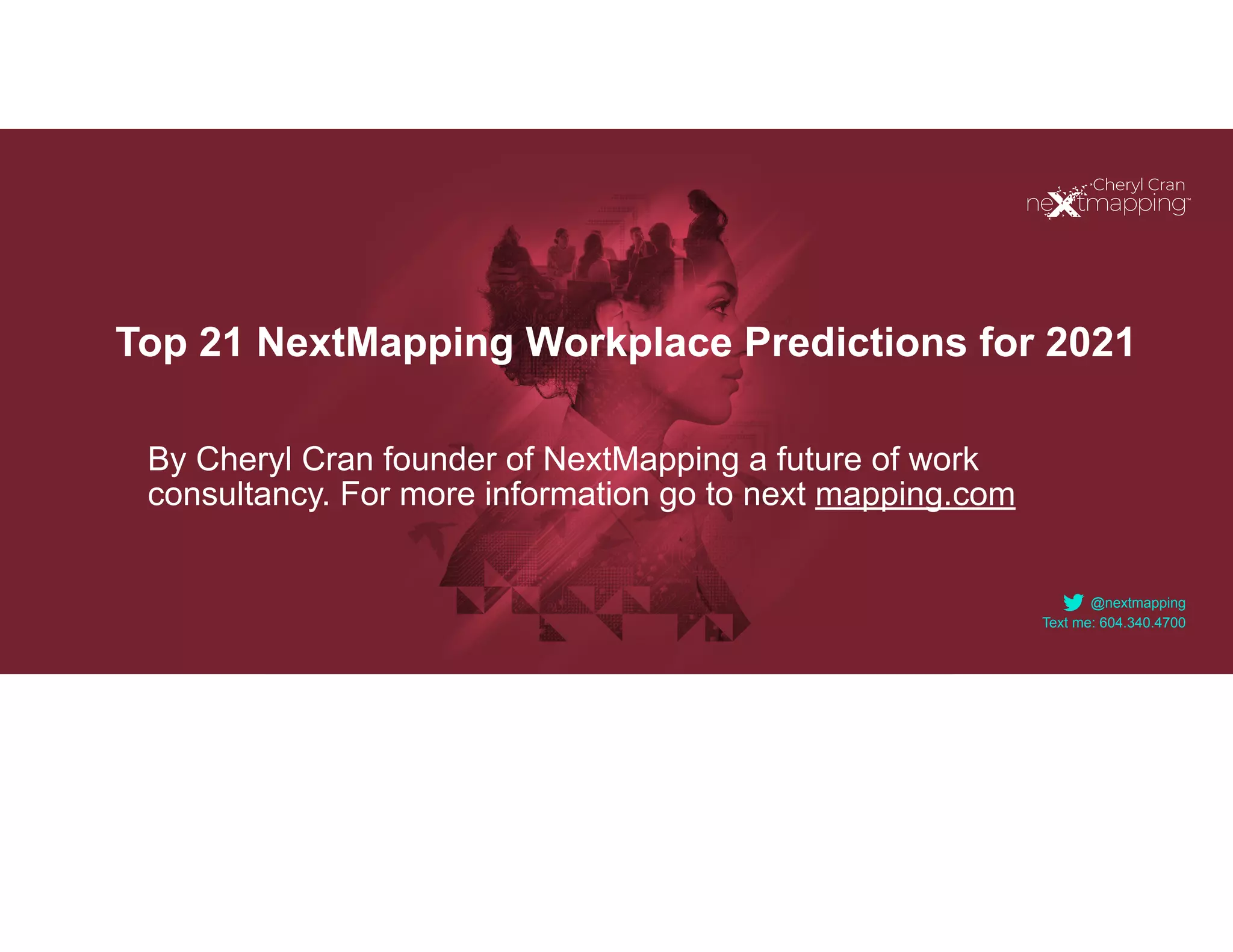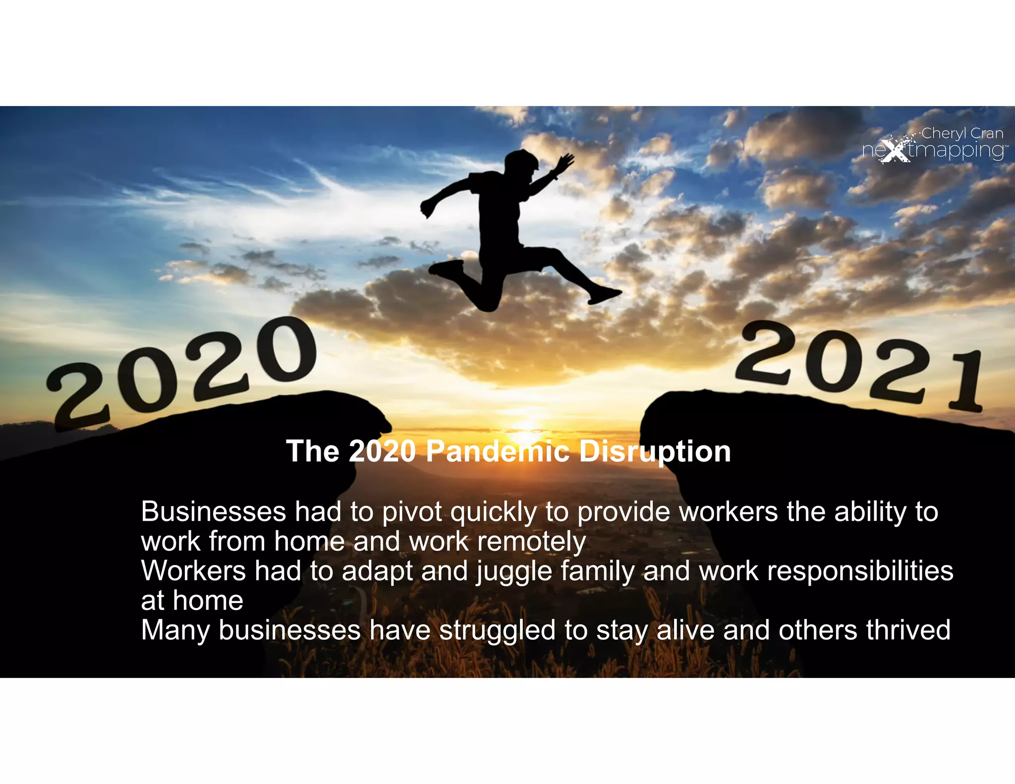 The document outlines 21 workplace predictions for 2021, indicating that remote and hybrid work will become the new normal as workers gain more power over their employers. Companies are expected to adapt by reimagining commercial real estate, increasing the use of digital tools, and prioritizing worker well-being amidst growing demand for contract and freelance workers. The ongoing challenge for businesses will be attracting and retaining talent, necessitating a focus on innovation, skills development, and flexible work arrangements.