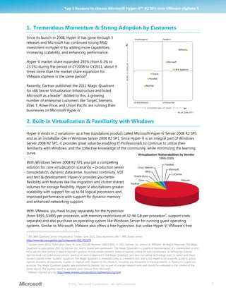 1. Hyper-V has strong adoption momentum and growth in market share compared to vSphere. Major customers are using Hyper-V.