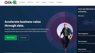 The document analyzes top business intelligence (BI) tools based on a survey of 600 buyers, highlighting key features and advantages of each tool. It ranks the tools from Tableau as the most popular to SAS, showcasing their respective benefits such as interactive visualizations, ease of use, and fast processing. The document emphasizes the importance of BI and data governance in meeting buyer expectations and maximizing data utilization.