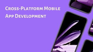 Cross-platform mobile app development allows apps to run on multiple platforms like iOS and Android. Popular frameworks include Ionic, React Native, Xamarin, and Flutter, each with varying code reusability and performance. Key components for development are JavaScript, HTML, CSS, and Dart, among others.