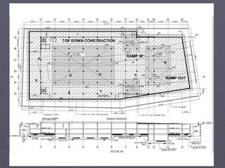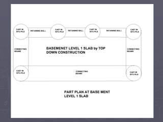 3) Pouring the first basement slab and then continuing excavation and construction from the bottom up