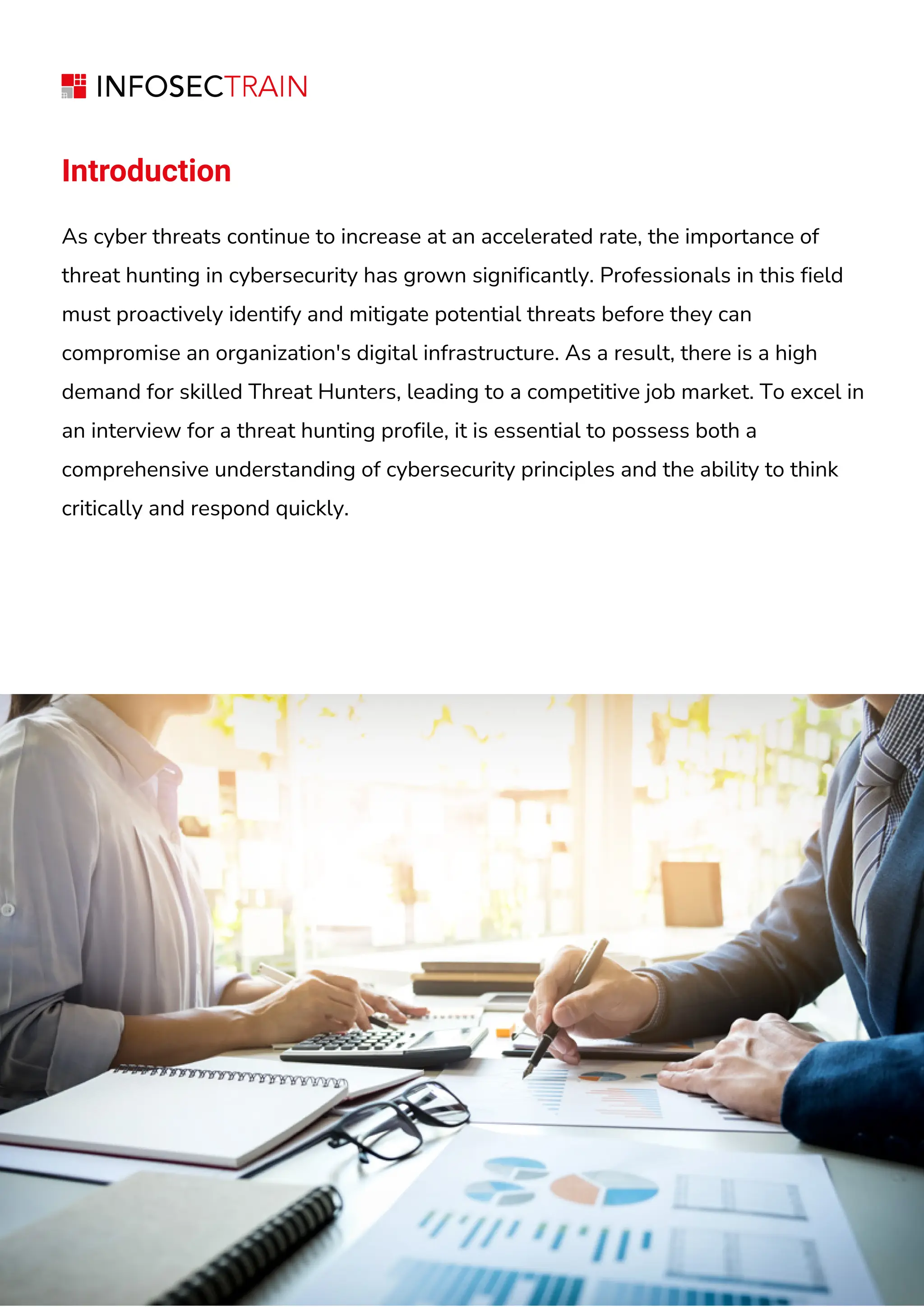 The document outlines essential interview questions and strategies for threat hunters in cybersecurity, emphasizing the need for proactive identification of threats. Key topics include crucial data sources for threat hunting, methodologies, tools, challenges, and the significance of frameworks like MITRE ATT&CK. It also addresses advanced persistent threats (APTs), incident response considerations, and best practices for securing cloud environments.
