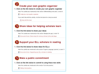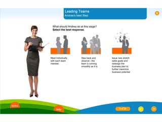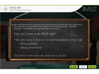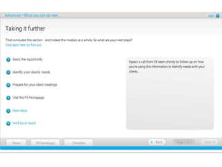 The document provides strategies for creating engaging e-learning experiences that captivate attention without incurring high costs. Tips focus on delivering concise, lively content, encouraging interaction, and incorporating social learning methods to enhance participant engagement. It emphasizes the importance of light-hearted communication and learner control to foster effective learning outcomes.