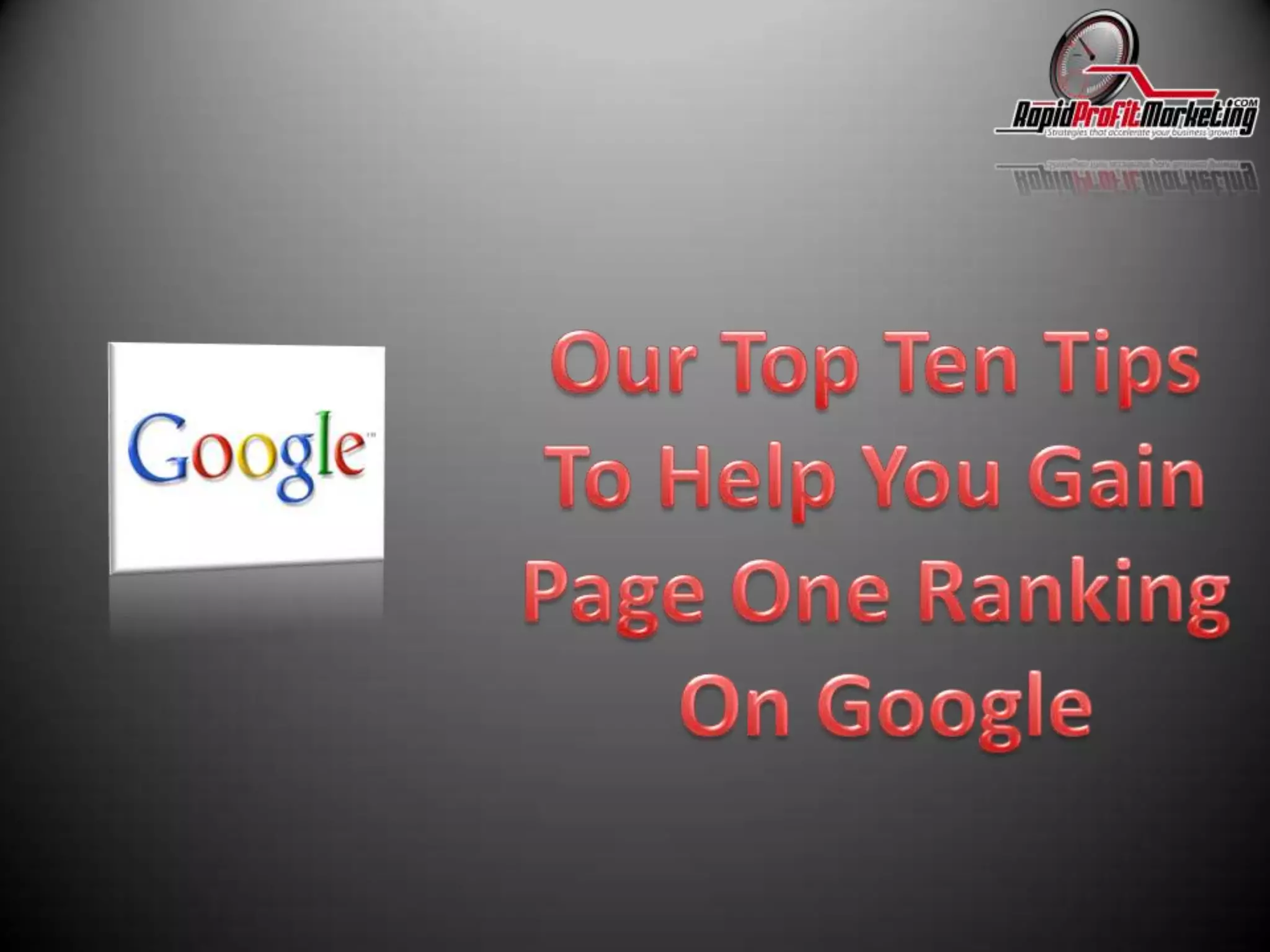 This document provides 10 tips for gaining page one rankings on Google: 1) Run a keyword analysis, 2) Use keywords in title tags, 3) Ensure inbound links use relevant anchor text, 4) Improve page rank status, 5) Use a sitemap, 6) Use H1/H2 tags, 7) Ensure inbound links come from relevant sites, 8) Naturally incorporate keywords in text, 9) Use keywords in URL names, 10) Be wary of SEO claims of quick page one rankings. It emphasizes that ranking takes time and recommends using tips wisely.