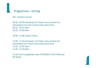 09:30 - 09:50 vrije keuze uit 5 tools / vous assistez à la