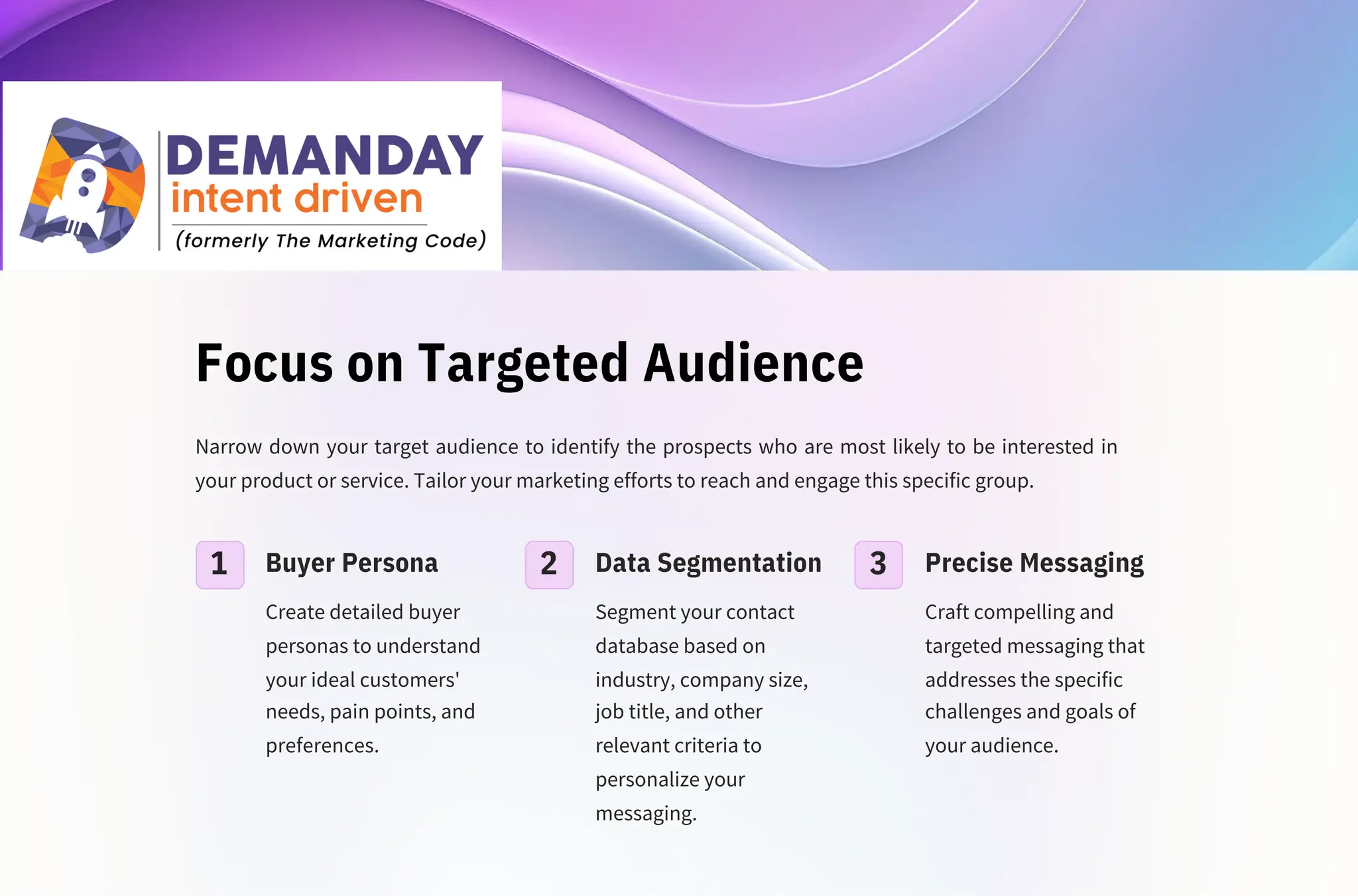 The document outlines five key strategies for successful B2B lead generation, including focusing on a targeted audience through detailed buyer personas, utilizing content marketing to provide valuable insights, and optimizing landing pages for better conversion. It also emphasizes the importance of implementing lead nurturing strategies and embracing social selling to build relationships. Finally, monitoring and analyzing performance metrics are essential for refining lead generation efforts and ensuring sustainable business growth.