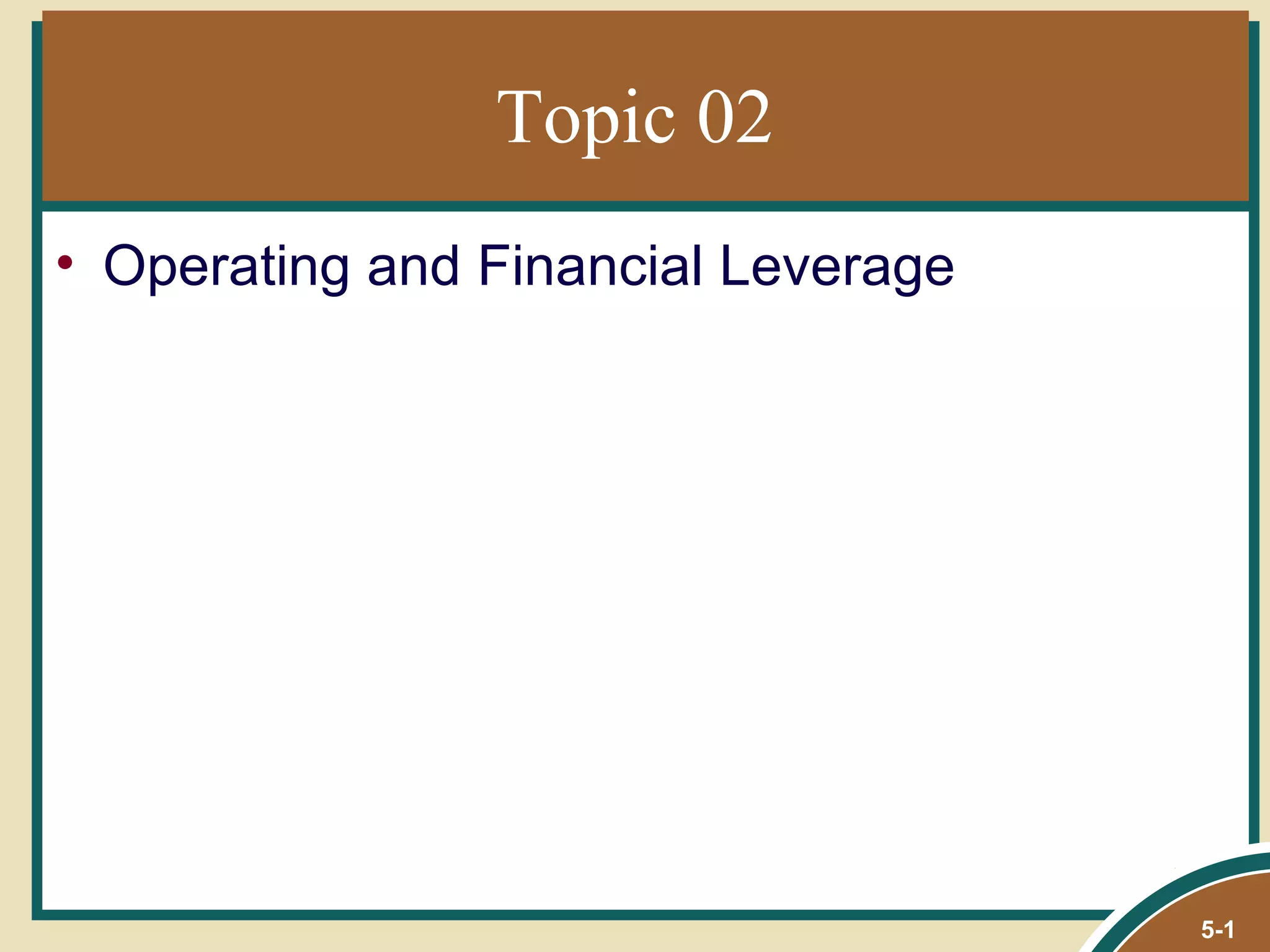 The document covers the concepts of operating and financial leverage, detailing how businesses can use these strategies to maximize profits while managing risks. It includes discussions on break-even analysis, the implications of fixed and variable costs, and the calculations related to degrees of operating and financial leverage. Additionally, it addresses the potential downsides of excessive leverage and when it is advisable for firms to adopt conservative approaches.