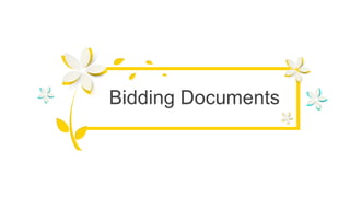 The document discusses the contents and purpose of bidding documents provided to prospective bidders. Key points include:
