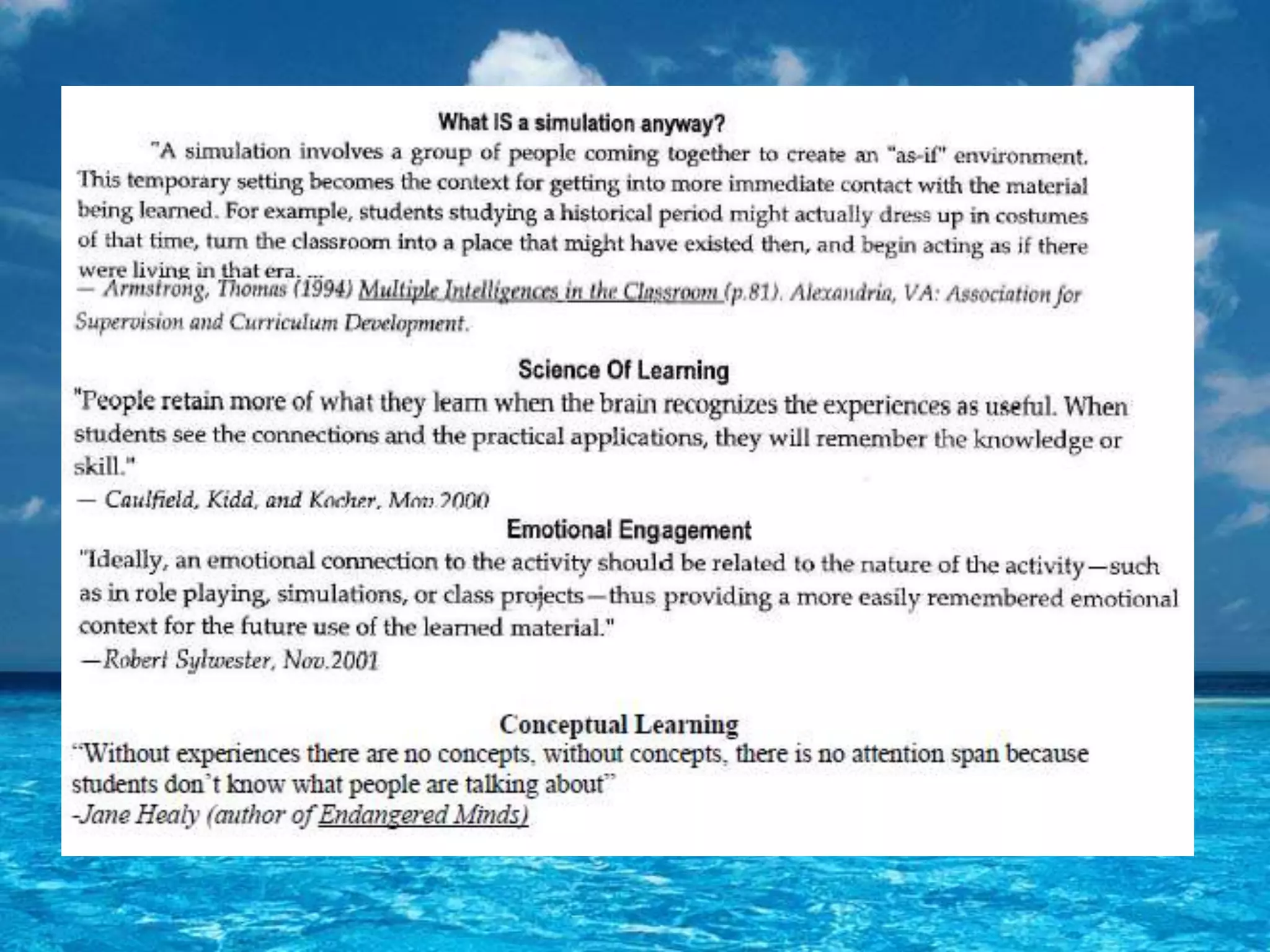 If stranded on a desert island with students, simulations like being castaways could teach through interactive experiences. Games are effective classroom tools that keep students engaged through movement, fun, and participation. Research shows students learn best not when bored, but through strategies like cooperative learning, simulations, and student-centered project-based learning with feedback. Teachers can facilitate learning through Web 2.0 tools and games like board games, memory games, and active movement games.