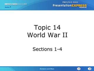 This document provides background information on the rise of totalitarian regimes in Europe and Asia in the 1930s, including the regimes led by Joseph Stalin in the Soviet Union, Benito Mussolini in Italy, and Adolf Hitler in Germany. It then discusses the early years of World War II, including Germany's rapid military conquests across Europe in 1939-1941. It also covers the debate in the United States over intervention in the war prior to the Japanese attack on Pearl Harbor in 1941, which prompted America's entry into the war. Finally, it summarizes the initial challenges faced by the Allies in 1942 as Japan expanded its territory rapidly in the Pacific.