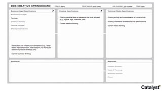 The document provides an overview of modules for account leadership training, including understanding the client's business, agency, communication planning, and creative briefs. It covers topics like knowing the client, their market, competitors, and developing a communications plan through frameworks like SWOT analysis, Boston Consulting Group matrix, and ROI springboards. The document emphasizes rigor and imagination in developing creative briefs to provide direction while inspiring creativity.