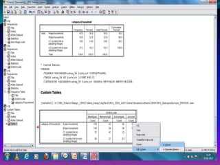 This document provides an introduction to the statistical software packages SPSS and STATA. It discusses why researchers may choose to use each package and highlights some of their key differences and strengths. SPSS is generally best for descriptive statistics and basic analyses, while STATA excels at more advanced econometric techniques and can handle larger datasets. The document also gives overviews of the basic structure and interfaces of each program.