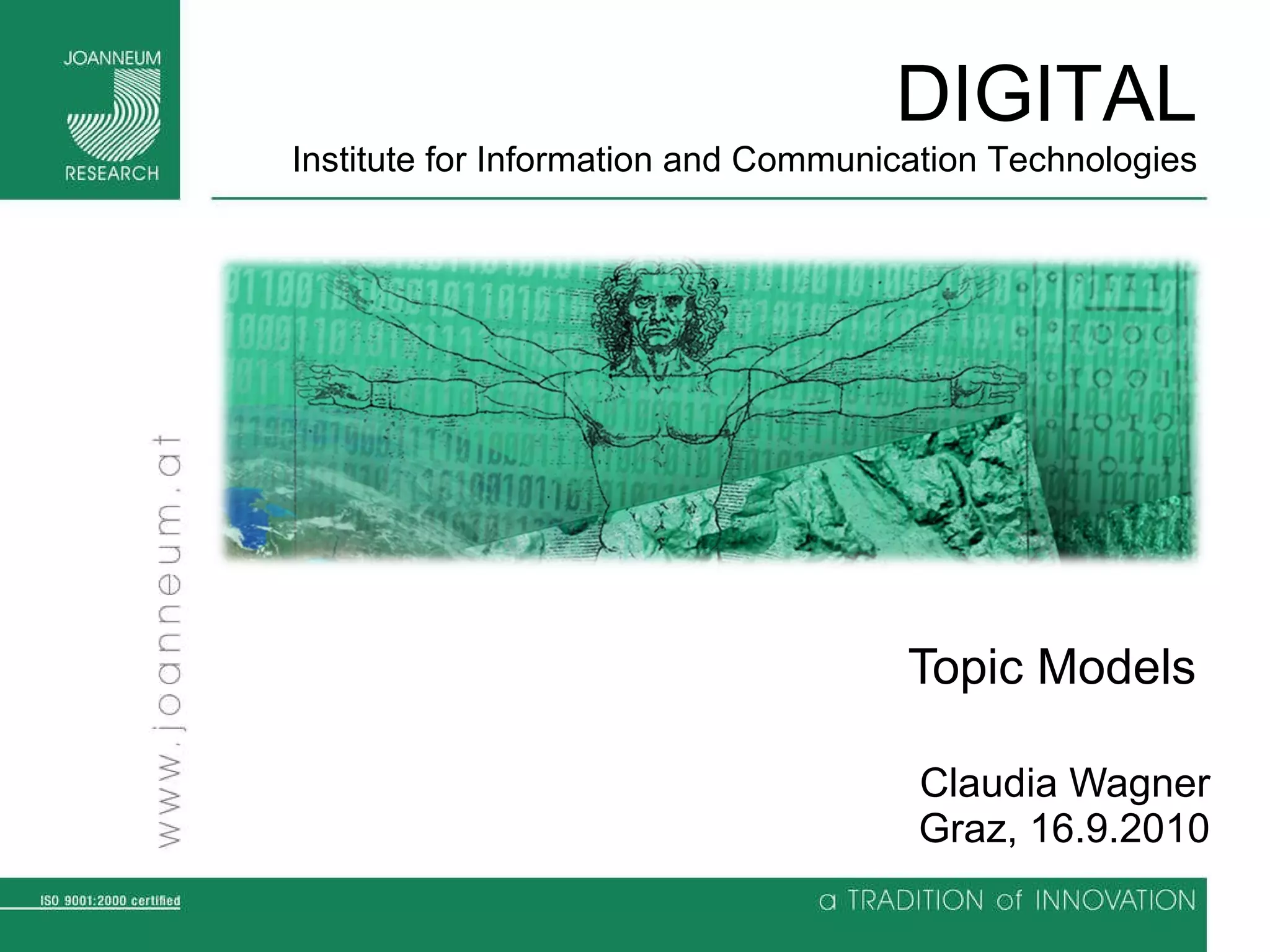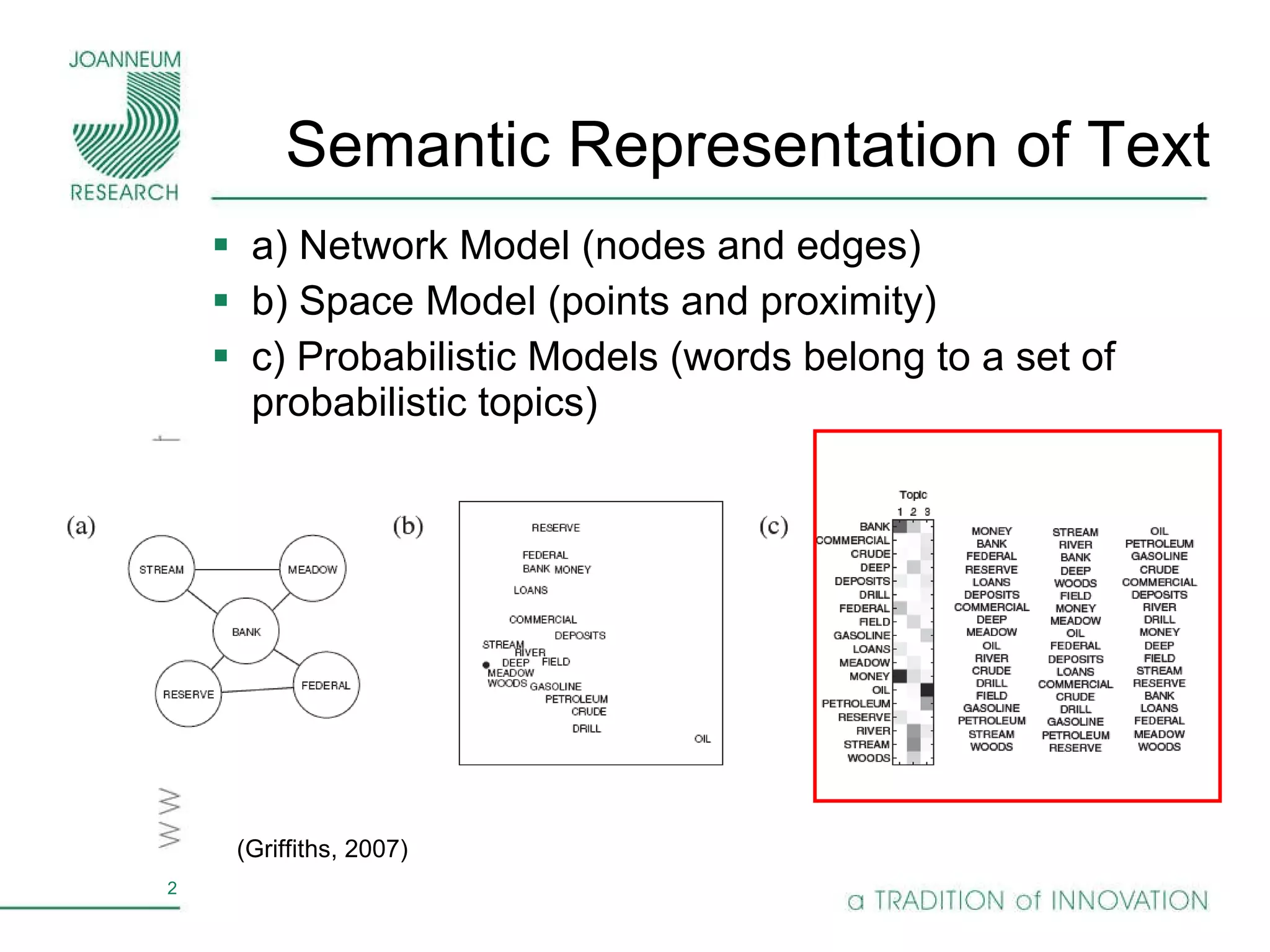 Topic models are probabilistic models for discovering the underlying semantic structure of a document collection based on a hierarchical Bayesian analysis. Latent Dirichlet allocation (LDA) is a commonly used topic model that represents documents as mixtures of topics and topics as distributions over words. LDA uses Gibbs sampling to estimate the posterior distribution over topic assignments given the words in each document.