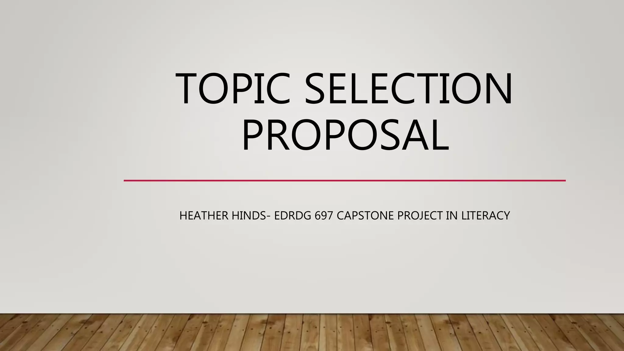 Heather Hinds proposes creating a professional development plan for teachers at her school to improve literacy instruction. She will first analyze literacy data from her school to identify weaknesses, then collaborate with teachers to develop the plan. The plan will focus on developing strategies for teaching comprehension and vocabulary. Heather will present the plan and begin training teachers during the new school year. The goals are to help teachers understand and use data to improve, highlight the need for a literacy coach, and form a cohesive learning community through collaborative professional development.