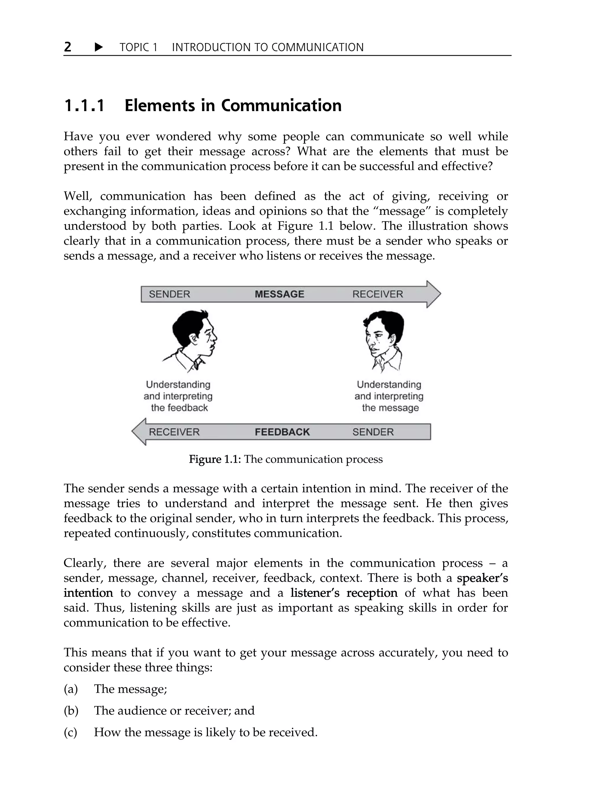 This document provides an overview of communication and the key elements of the communication process. It discusses the importance of developing strong written communication skills for both personal and professional purposes. The main elements of communication include a sender, message, channel, receiver, feedback, and context. For communication to be effective, the sender must consider the message, audience, and how the message may be received. The document also outlines some best practices for written communication, such as planning, writing, and editing, as well as common pitfalls to avoid like confusing language, verbosity, poor sentence structure, and information overload.