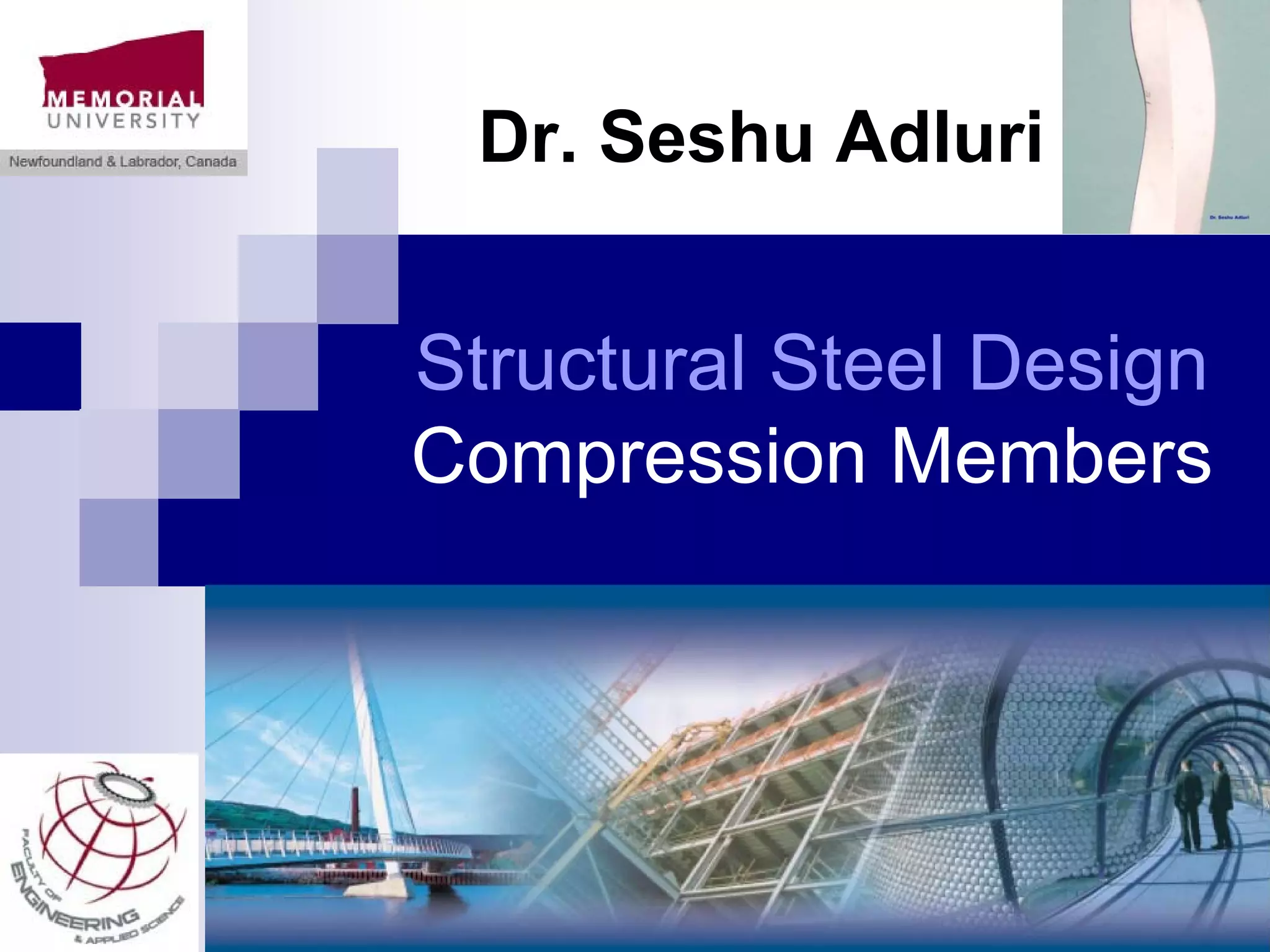 The document discusses compression members in structural engineering. It covers various types of compression members like columns in buildings, trusses, bridges, and towers. It discusses concepts like buckling, effective length, slenderness ratio, and different buckling modes. It provides examples of column shapes and failures. Formulas for critical load and effective length factors are presented. Considerations for real columns like residual stresses and initial imperfections are also covered.