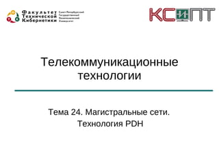 Документ охватывает технологии магистральных сетей, в частности, Plesiochronous Digital Hierarchy (PDH), используемые для цифровой передачи трафика со скоростями до 565 Мбит/с. Описываются области применения, особенности мультиплексирования, стандарты фреймирования и иерархия скоростей в различных категориях DS и E. Документ также выделяет недостатки технологии PDH, такие как отсутствие прямого извлечения сигналов и ограниченные возможности управления.