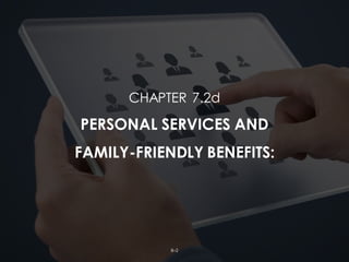 1) Personal services like credit unions, employee assistance programs that provide counseling and advisory services, and family-friendly benefits like subsidized childcare, eldercare, and time off.