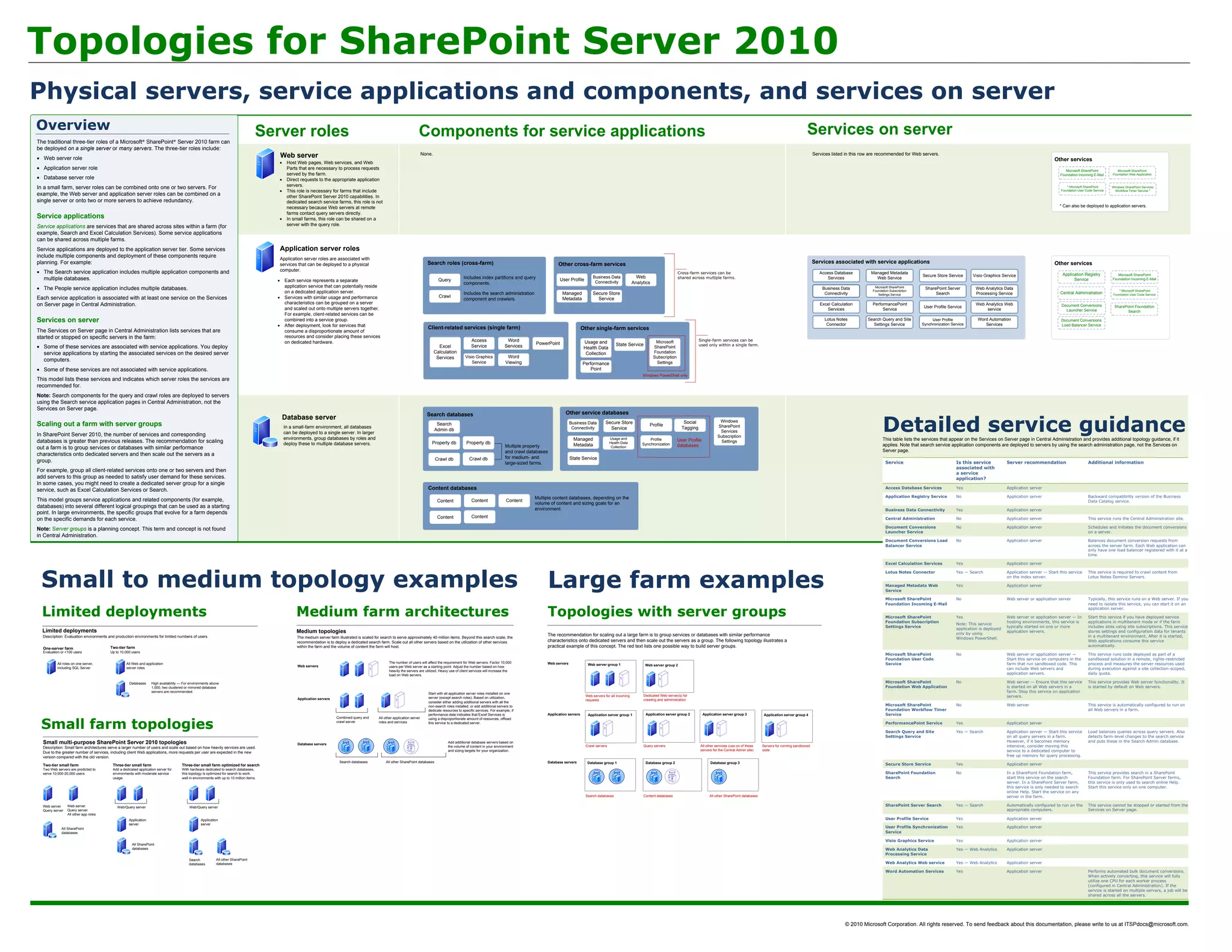 3) Examples of small, medium, and large farm topologies with different server configurations.