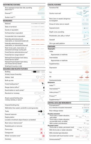 A topographic map uses contour lines to represent the shape and elevation of land features. It also includes symbols representing both natural and man-made features like vegetation, buildings, and roads. Contour lines connect points of equal elevation, allowing the height of mountains, depths of oceans, and steepness of slopes to be measured. A topographic map provides essential information about the landscape and terrain of a mapped area.